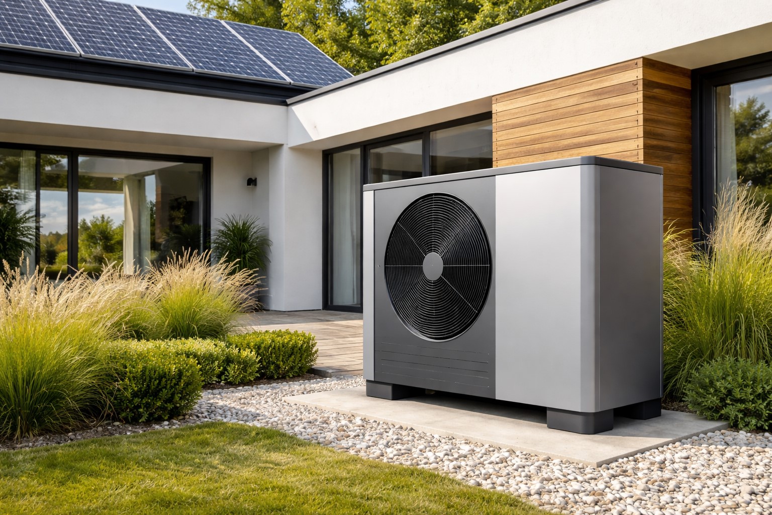 Pompy ciepła doskonale współpracują z instalacjami fotowoltaicznymi. Połączenie tych technologii pozwala na: